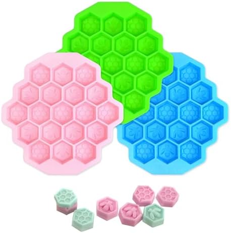 View full details3Pcs Honeycomb Bees Silicone Molds, XJMWXHFC 19 Cavities Chocolate Molds, Food Grade Silicone Baking Molds, Non-Stick Cake Mold for Chocolate, Candy, Jelly, Ice Cube, Mini Cakes (Pink, Green, Blue)