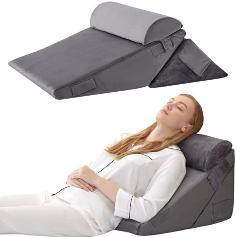 View full details3Pcs Orthopedic Bed Wedge Pillow Set, Foam Wedge Pillow Post Surgery for Back, Leg and Knee Support, Adjustable 9&12 Inch Folding Triangle Pillow for Sleeping, Acid Reflux, Snoring, Light Grey