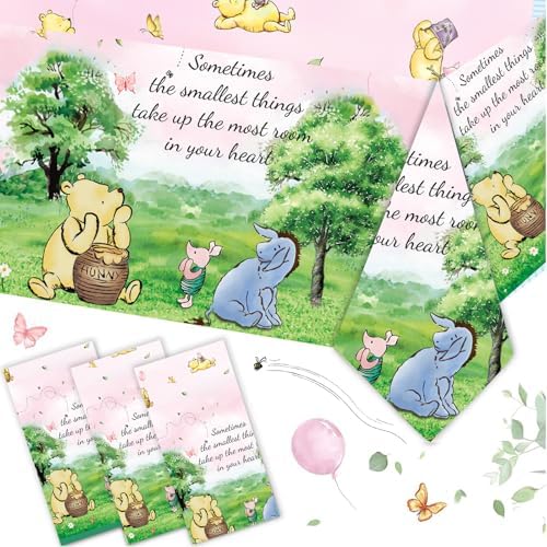 Winnie Baby Shower Decorations: You will get 3 pieces Pink winnie baby shower decorations tablecloth. This Classic Winnie party supplies come wi...