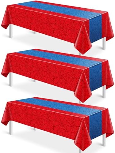 View full details3Pcs Spider Web Themed Birthday Party Tablecloths Decorations,Red Blue Hero Plastic Table Cover Disposable Rectangle Table Cloth for Baby Shower Kids Boys Birthday Party Supplies,54x108 Inch