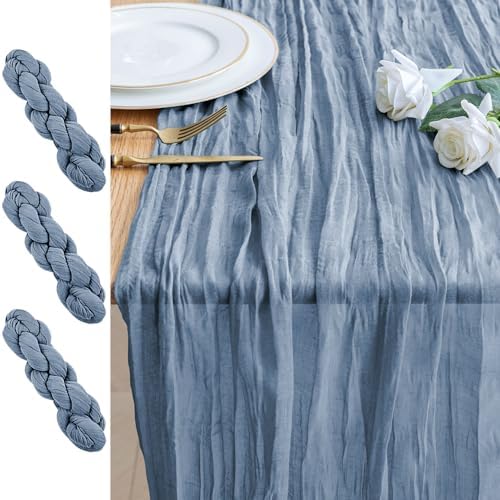 View full details3PCS Table Runner Cheesecloth 10FT Dusty Blue Boho Gauze Cheese Cloth Rustic Sheer Table Runners for Wedding Bridal Baby Shower Party Decoration