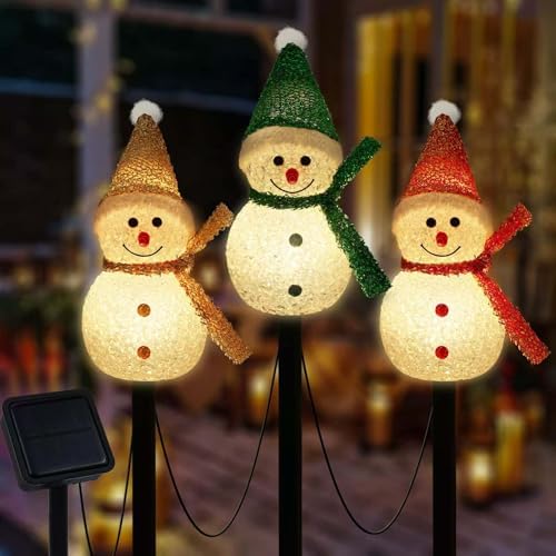 View full details3PCS Snowman Shape Solar Christmas Lights Decorations, Solar Landscape Pathway Stakes Lights, Outdoor Christmas Lights Decor for Garden, Yard, Porch (Color Hat- Warm White)
