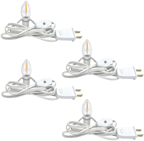 View full details4 Accessory Cord with 4 Led Light Bulb 6 Ft White Cord with On/Off Switch Plugs E12 Candelabra LED Light Bulbs and Clips for Halloween Christmas Decorations Craft Village House Decoration