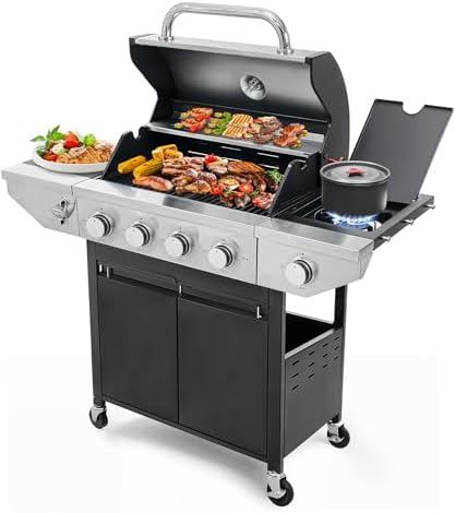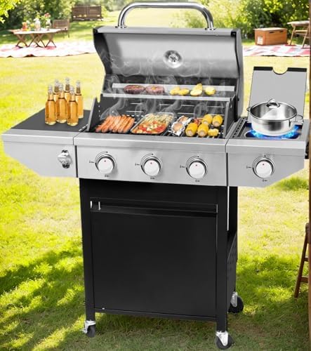 View full details4 Burner Propane Gas Grill with Side Burner, Stainless Steel BBQ Grill 48,500 BTU for Outdoor Cooking Kitchen, Garden and Patio Backyard Barbecue, Dark Black and Silver