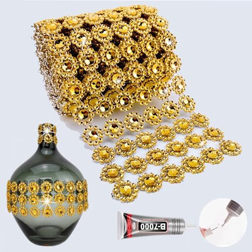 View full details3Yards Gold Flower Rhinestone Ribbon Trim with Glue, 4In/6Rows Rhinestone Mesh Fabric, Bling Ribbon Roll for Crafts, Party Christmas New Year Decoration(3Y-Gold)