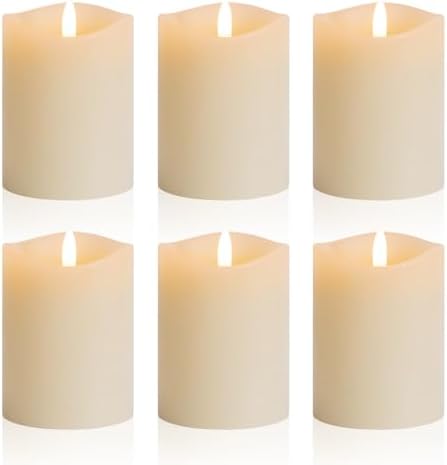 View full details4 inch Flickering Flameless Candles with Remote, LED Pillar Candle Small, Real Wax Battery Operated Candles with Timer, Ivory Fake Candles for Wedding,Party,Christmas Decor, Set of 6