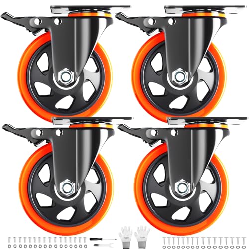 View full details4 Inch Caster Wheels Heavy Duty 2200Lbs, Casters Set of 4 with Safety Dual Locking, Swivel Industrial Plate Casters, No Noise Wheels for Cart, Furniture(Bonus of 2 Hardware Kits & Gloves)