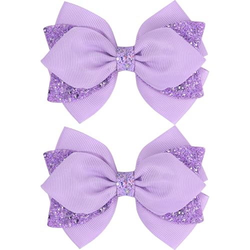 View full details4 Inch Sparkly Glitter Purple Hair Bow Clips for Girls Boutique Sequin Alligator Barrettes Pins for Teens Toddler Children Kids Grosgrain Hair Accessories for Christmas Halloween Fall Birthday