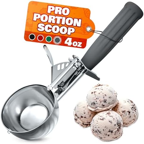 Durable 4 oz Ice Cream Scoop. This icecream scooper stainless steel with trigger for easy release doubles as cookie scoops for baking, making po...