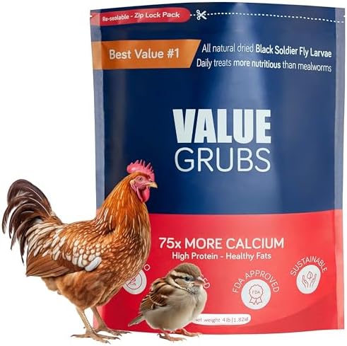 View full details4 lb Black Soldier Fly Larvae for Chickens - High Protein Chicken Feed with 75x More Calcium Than Mealworms - Healthy Poultry Treats for Ducks, Birds - Resealable Bag for Freshness