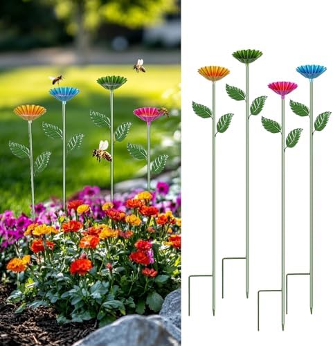 View full details4 Pack Bee Watering Station, Bee Bath for Garden Metal Bee Water Feeder with Flower Design, Colorful Butterfly Bee Bath Bowl for Outdoor Garden Yard Decor (Red,Green,Blue,Yellow)