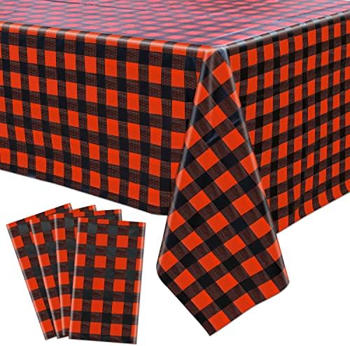 View full details4 Pack Buffalo Plaid Tablecloths - 51x86 Disposable Plastic Red and Black Lumberjack Checkered Tablecloth for Party, Picnic, Camping, Barbecue, Christmas, Holiday Table Decor