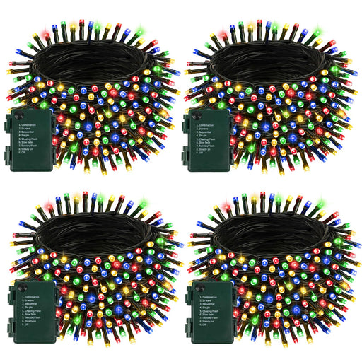 View full details4 Pack Battery Operated Christmas Lights with Timer, 132FT 400 LED Waterproof Battery Twinkle Light, 8 Modes Green Wire Fairy Light for Indoor & Outdoor Bedroom Tree Christmas Decorations (Multicolor)