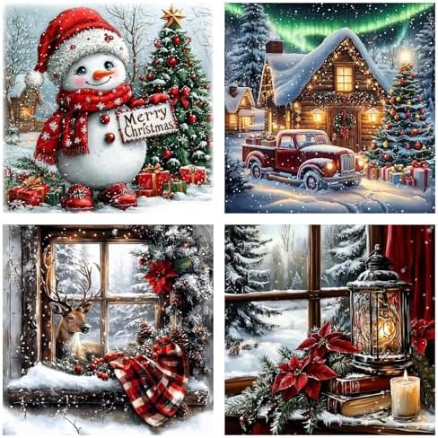 View full details4 Pack Christmas Diamond Art Kits for Adults,Snowman Deer Lantern Truck House Diamond Painting Kits for Adults,5D Full Drill DIY Diamond Dot Gem Art Kits Wall Home Decor Arts Craft 12X12 inch