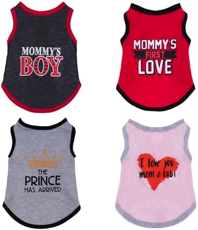View full details4 Pack Dog Shirts Summer Printed Puppy Clothes Novel Sleeveless Pet T Shirts Dog Clothes for Small Medium Dogs Cats Boy(M)