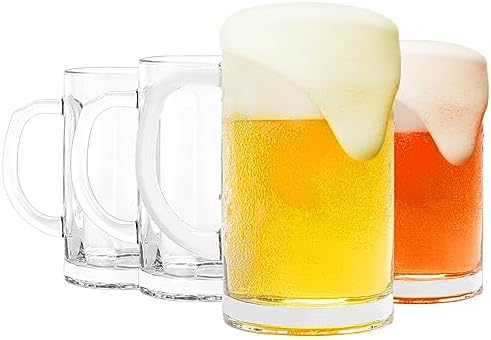 View full details4 Pack Heavy-Duty Glass Mugs - 16oz Beer Glasses, Large with Handle, Freezer Safe, Classic Beer Mug Set for Bar & Beverages