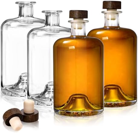 View full details4 Pack Glass Liquor Bottles, 25 Oz Clear Wine Bottles with T-Top Cork Stopper, Heavy Base Vodka Whiskey Bottle Dispenser for Beverages, Drinks, Oil, Vinegar, Kombucha Beer