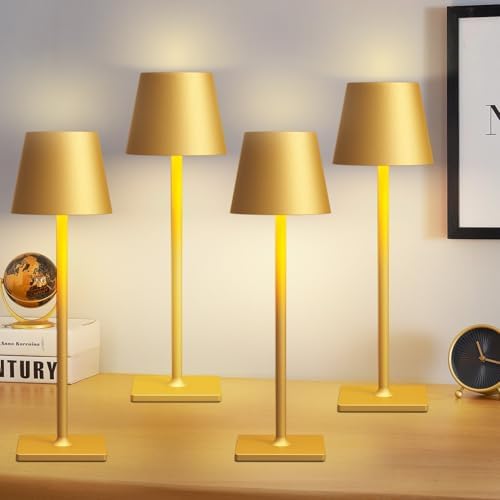 View full details4 Pack Gold Cordless Table Lamps for Gifts, Portable Rechargeable Lamp, 6000mAh Battery Operated lamps, 3 Color Dimmable LED Table Light for Holiday, Christmas, Graduation Gifts, Teacher Gifts