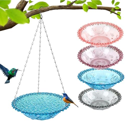 View full details4 Pack Hanging Bird Baths Bowl Outdoor Bird Feeder 15.7 Inch Metal Chains, Weather-Resistant Hanging Bird Feeder & Bath Tray for Garden, Patio, Backyard Wildlife Decor