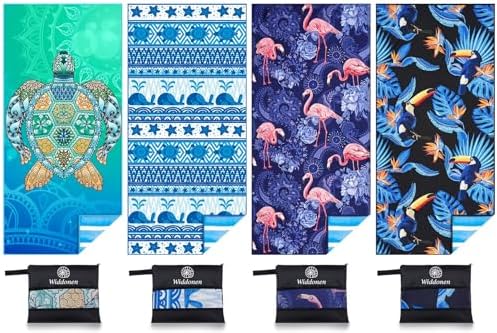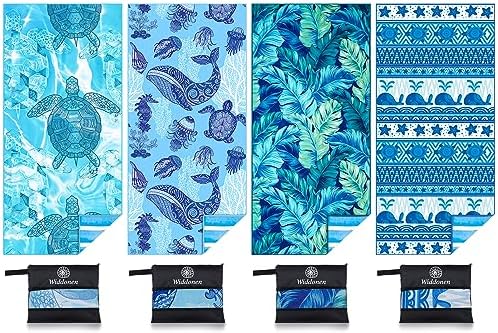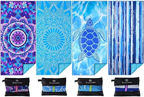 View full details4 Pack Microfiber Lightweight Beach Towel Sand Free Quick Dry Absorbent Thin Compact Towels for Swimming Pool Camping Beach Accessories Large Easy Pack Travel Things for Vacation Essentials Gift