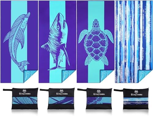 View full details4 Pack Microfiber Thin Lightweight Beach Towel Oversized 71x32 Extra Large Sand Free Towels for Travel Swim Pool Yoga Gym Camping for Adults Women Men Beach Essentials Accessories Vacation Gift