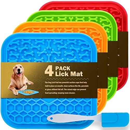View full details4 Pack Lick Mat for Dogs, Dog Slow Feeder Dowl Mat for Bathing Grooming Nailing Trimming, Food-Grade, Non-Toxic, Licking pad for Dogs and Cats, Puzzle Feeding Mat for Pets
