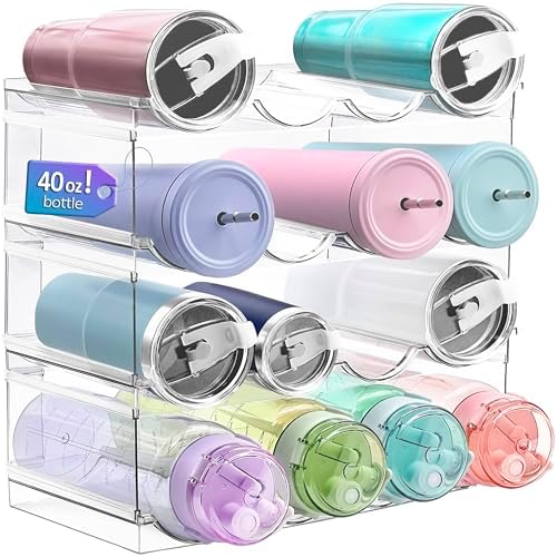 View full details4 Pack Water Bottle Organizer, Large Compartment Stackable Kitchen Pantry Organization and Storage Rack, Plastic Water Bottle Holder for Kitchen Cabinet Organizer and Storage, Tumbler Mug Cup Shelf