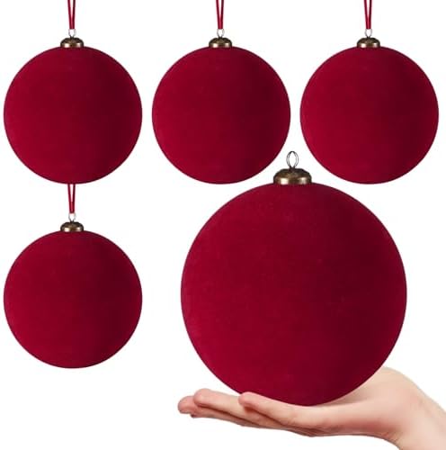 View full details4 Pcs Large Velvet Christmas Balls 6 Inch Christmas Tree Decorations Xmas Ornaments Balls for Family Holiday Wedding Party Xmas Tree Hanging Decoration (Wine Red)