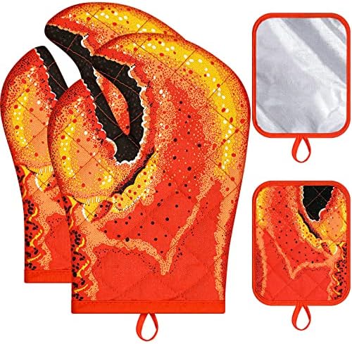 View full details4 Pcs Lobster Claw Oven Mitts and Pot Holders Quilted Cotton Lining Design Heat Resistant Oven Gloves Set with Poth Holder Microwave Gloves Safe for Baking Cooking Barbecue