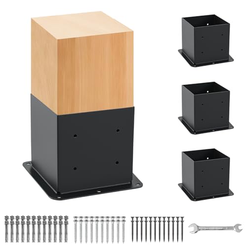 View full details4 Pcs Post Base,6"x 6" Post Brackets(Actual 5.6"x 5.6"), Heavy Duty Black Metal Powder-Coated Thick Steel Post Anchor Outdoor for Support Deck Base Plate, Fence Kit,Mialbox Post Mount