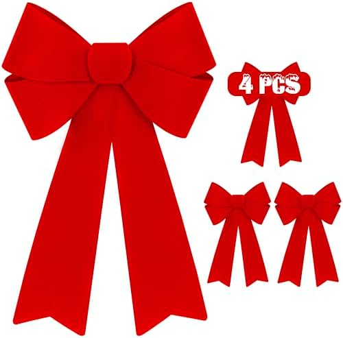 View full details4 PCS Red Bows Christmas Decorations, 12 x 18 Inches Outdoor Christmas Bows, Red Velvet PVC Hanging Large Xmas Decor Indoor Outdoor Velvet Xmas Party Supplies for Wreath Stairs