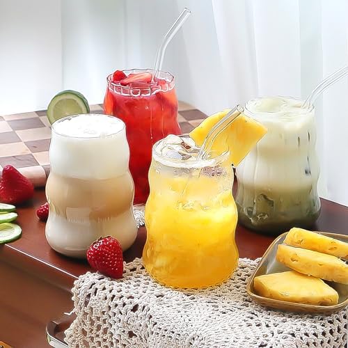 View full details4 Pcs Ribbed Glass Cups, Vintage Drinking Glassware with Glass Straw 18 Oz Bubble Iced Coffee Cup for Juice, Tea, Beverage, Milk, Beer, Cocktails Ideal for Gift