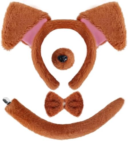 View full details4 Pieces Dog Costume Set Brown Puppy Dog Costume Accessories Puppy Ears Headband and tail Bow Tie Nose Animal Accessories for Halloween Christmas Cosplay Dress Up Party