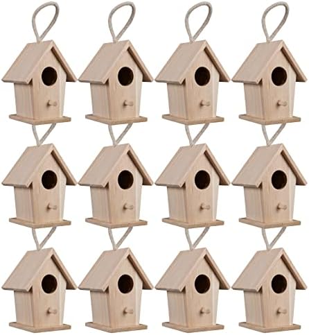 4.3" Traditional Birdhouse by Make Market - Unfinished Hanging Birdhouse Made of 100% Wood, Outdoor Nesting Boxes - Bulk 12 Pack