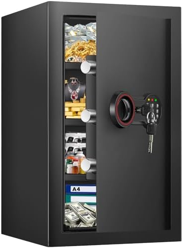 View full details4.0 Cub Large Home Safe Fireproof Waterproof, Anti-theft Fireproof Safe Box with Programmable Keypad, Spare Keys and Removable Shelf, Digital Security Safe for Home Money Firearm Documents Medicines