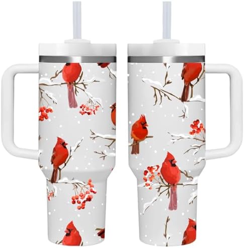 ❤ GIFTS - 40 OZ Cardinal Tumbler with Handle.Cardinal Lover Gifts.Unique Birthday Christmas Gifts for Cardinal Lover.Personalized 40 OZ Cardinal...