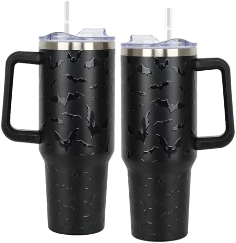 View full details40 oz Halloween Tumbler with Lid and Straw - 5D Bat Print Tumblers with Handle Halloween Stainless Steel Insulated Travel Cup Black Coffee Cups Gifts for Women Men Adults