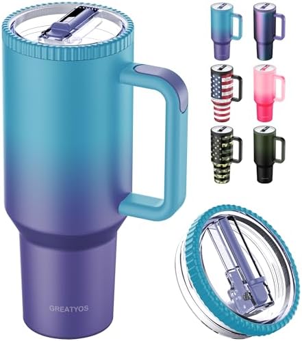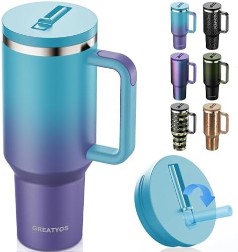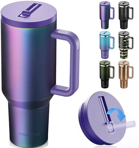 View full details40 oz Tumbler with Handle and Flip Straw Lid - Upgraded Insulated Traveler Tumblers with Lids Straws Vacuum Leak Proof Stainless Steel 40oz Cup Mug Gifts for Men Women Him Her (Aurora)