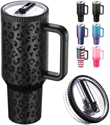 View full details40 oz Tumbler with Handle and Flip Straw Lid - Upgraded Greatyos Traveler 40oz Tumblers with Lids Straws Vacuum Insulated Leak Proof Stainless Steel Cup Mug Gifts for Men Women Him Her (Black Leopard)