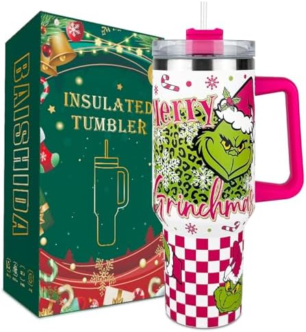 View full details40 oz Christmas Grinchi Tumbler with Handle and Straw, Stainless Steel Tumbler with Lid Straw, Car Sports Travel Cup Christmas Gift 40oz Tumblers (Christmas 1)