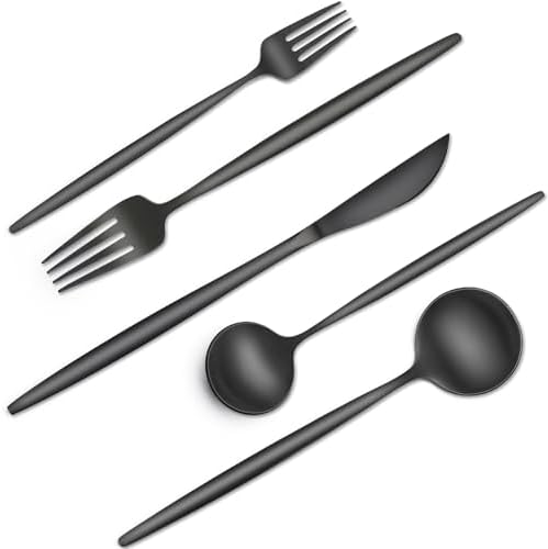 View full details40 Pieces Black Silverware Set, Stainless Steel Flatware Set Service for 8, Tableware Cutlery Set, Utensils for Home, Restaurant, hotel, Include Knife Fork Spoon Set,Dishwasher Safe