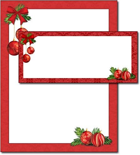 View full details40 Sets - Red Christmas Bulbs Holiday Paper & Envelopes - 8.5 x 11 Holiday Letterhead Set for Inkjet or Laser Printers – Christmas Writing Paper with Matching Envelopes