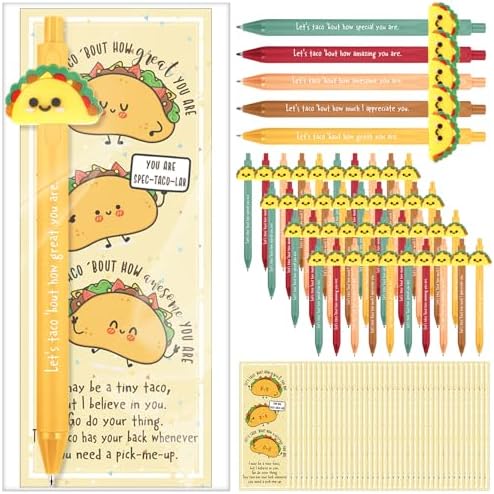 View full details40 Set Positive Taco Gift Funny Emotional Support Taco Ballpoint Pen with Inspirational Bookmark Christmas Employee Appreciation Gift for Coworker Nurse Teacher Student Birthday Party Favors