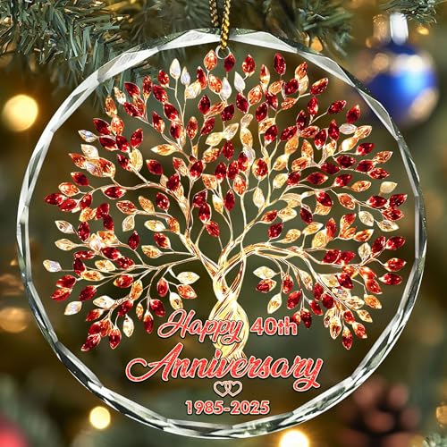 40th Anniversary Glass Ornament, 40th Wedding Anniversary Gift for Couple, Hanging Ornament for Parents, 40th Wedding Keepsake(40th Anniversary Glass Ornament)