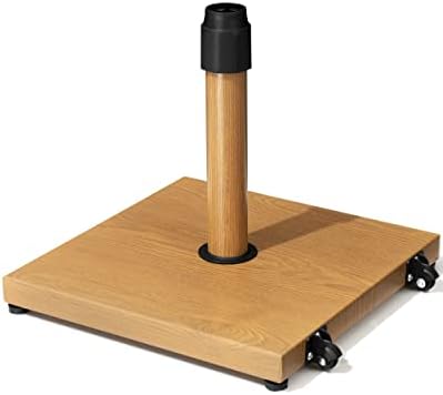 View full details42lbs Patio Umbrella Base with Wheels - Heavy Duty Outdoor Patio Market Umbrella Stand for Deck, Poolside, Balcony, Wind-Resistant Design, Decorative Wood Pattern