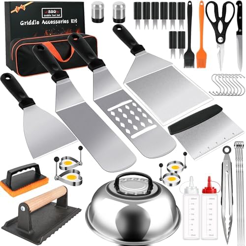 View full details42PCS Blackstone Griddle Accessories Kit, Flat Top Grill Accessories Set for Blackstone and Camp Chef, Grill Spatula Set with Melting Dome, Burger Press, Gifts for Men, for Men