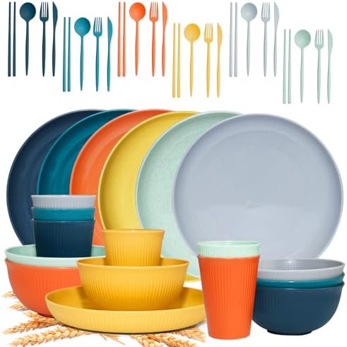 42-PIECE PLASTIC DINNERWARE SET: You will receive 6 set of wheat straw dinnerware in different colors,Includes 6pcs 8 inch dinner plates, 6pcs 2...