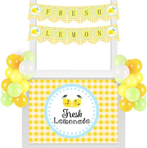 View full details43 Pcs Lemonade Stand Supplies 45 x 31 Inch Tablecloth, 2 Fresh Lemon Garland, 40 Latex Balloons for Fresh Squeezed Lemonade Stand Decorations Kit Summer Lemon Birthday Party(Check)