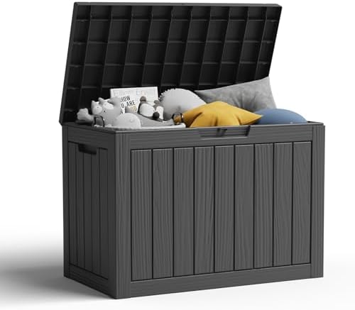 View full details45 Gallon Outdoor Storage Box, Resin Deck Box Waterproof, Storage Chest for Outside Patio Furniture Cushions, Pool Supplies, Garden Tools, UV Resistant and Weatherproof, Black