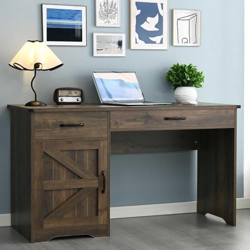 View full details48 Inch Farmhouse Desk with 2 Drawers, Small Executive Desk with File Cabinet & barn Door for Small Spaces, Wooden Computer Desk with Storage for Bedroom, Work & Study, Oak